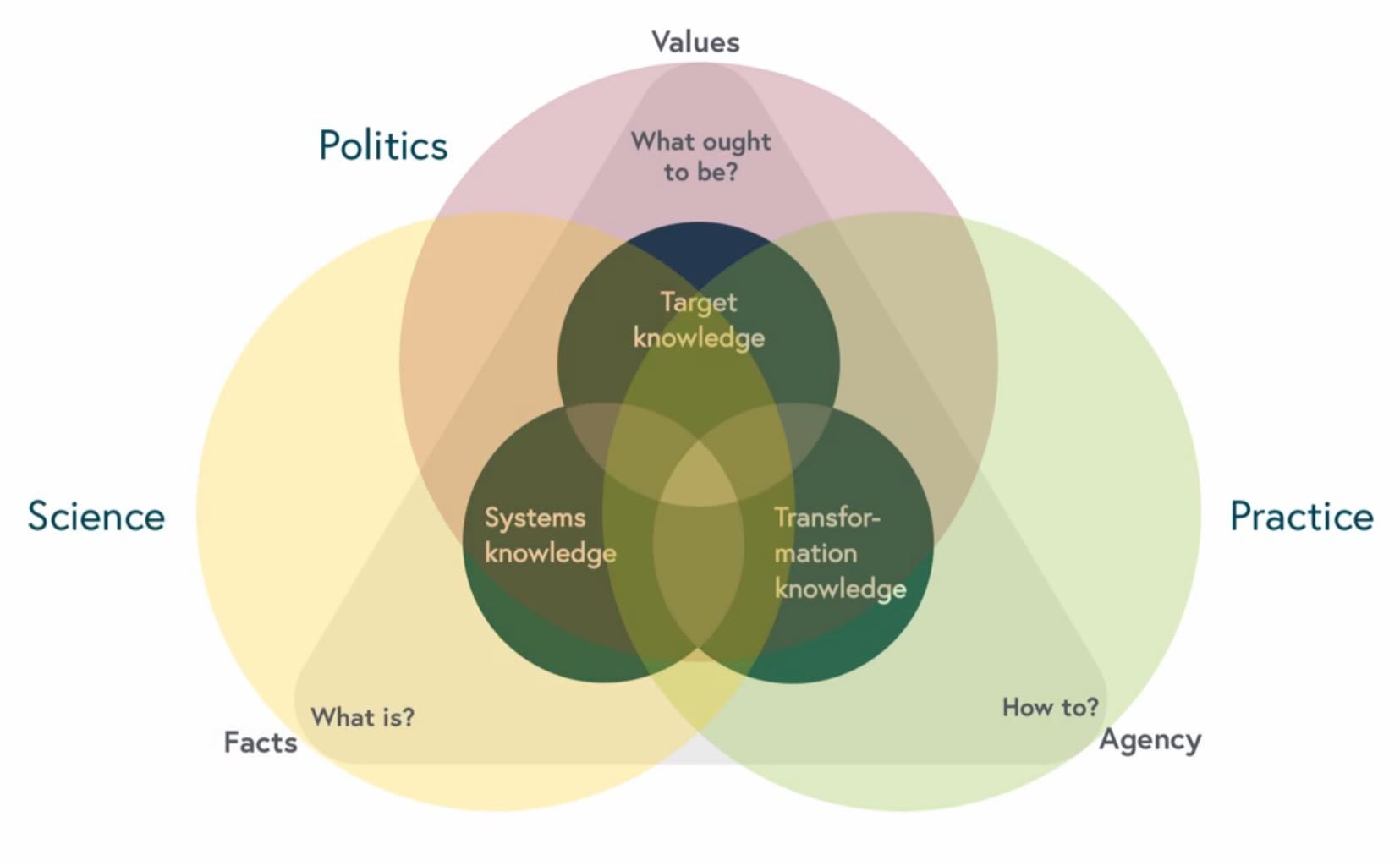 Um zur Bewältigung gesellschaftlicher Herausforderungen beizutragen, schafft transdisziplinäre Forschung nicht nur Wissen, um ein Problem zu verstehen. Sie erzeugt auch Wissen, das hilft, das Problem zu überwinden. Deshalb ist es wichtig, drei verschiedene Arten von Wissen zu produzieren.